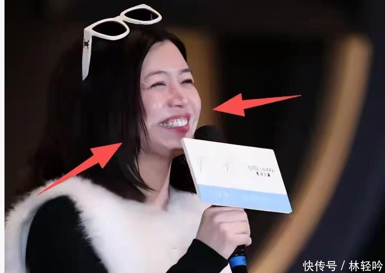 近距离观察可以发现,她的脸部明显浮肿,像是刚哭过一般,双下巴轮廓清晰可见,皮肤松弛感增强。